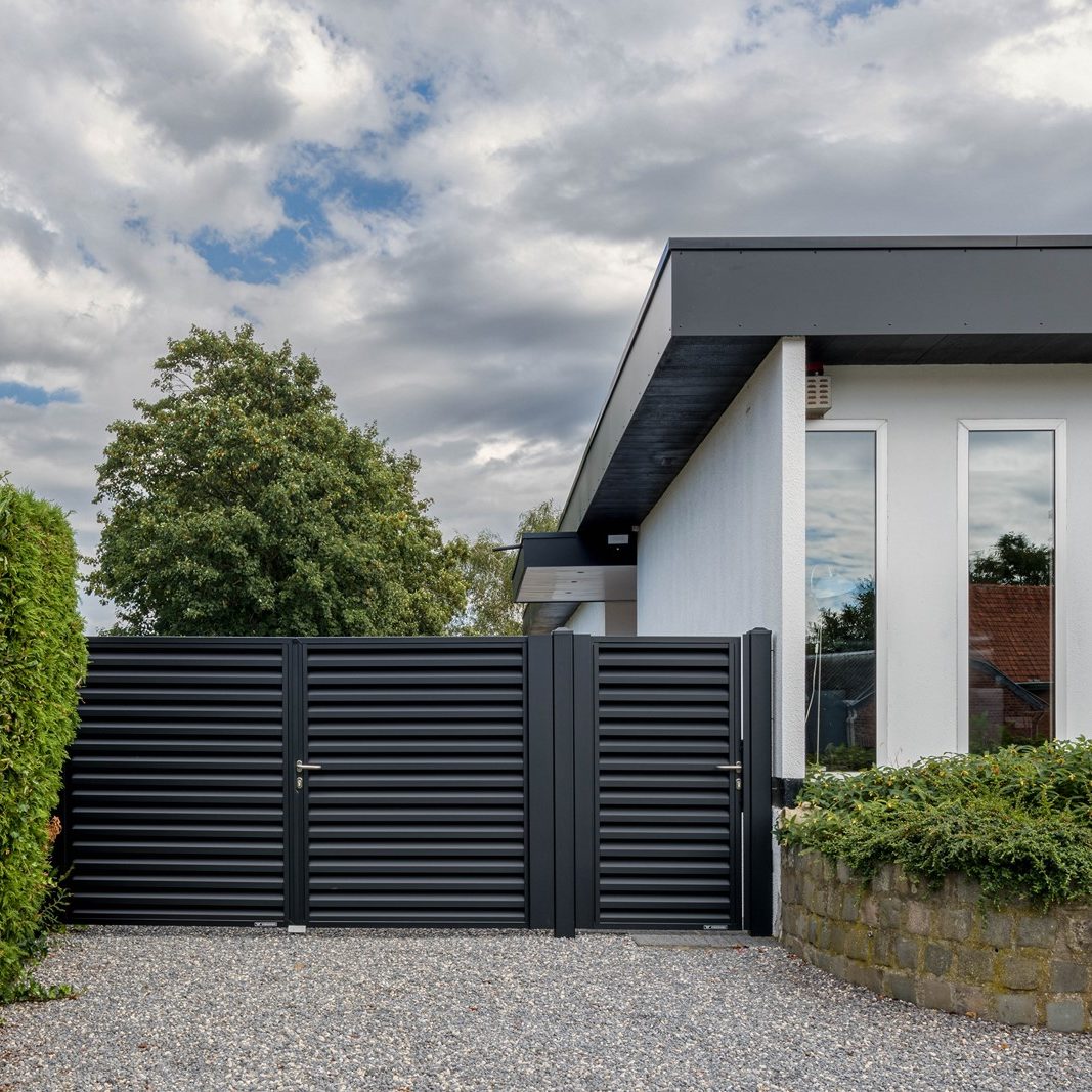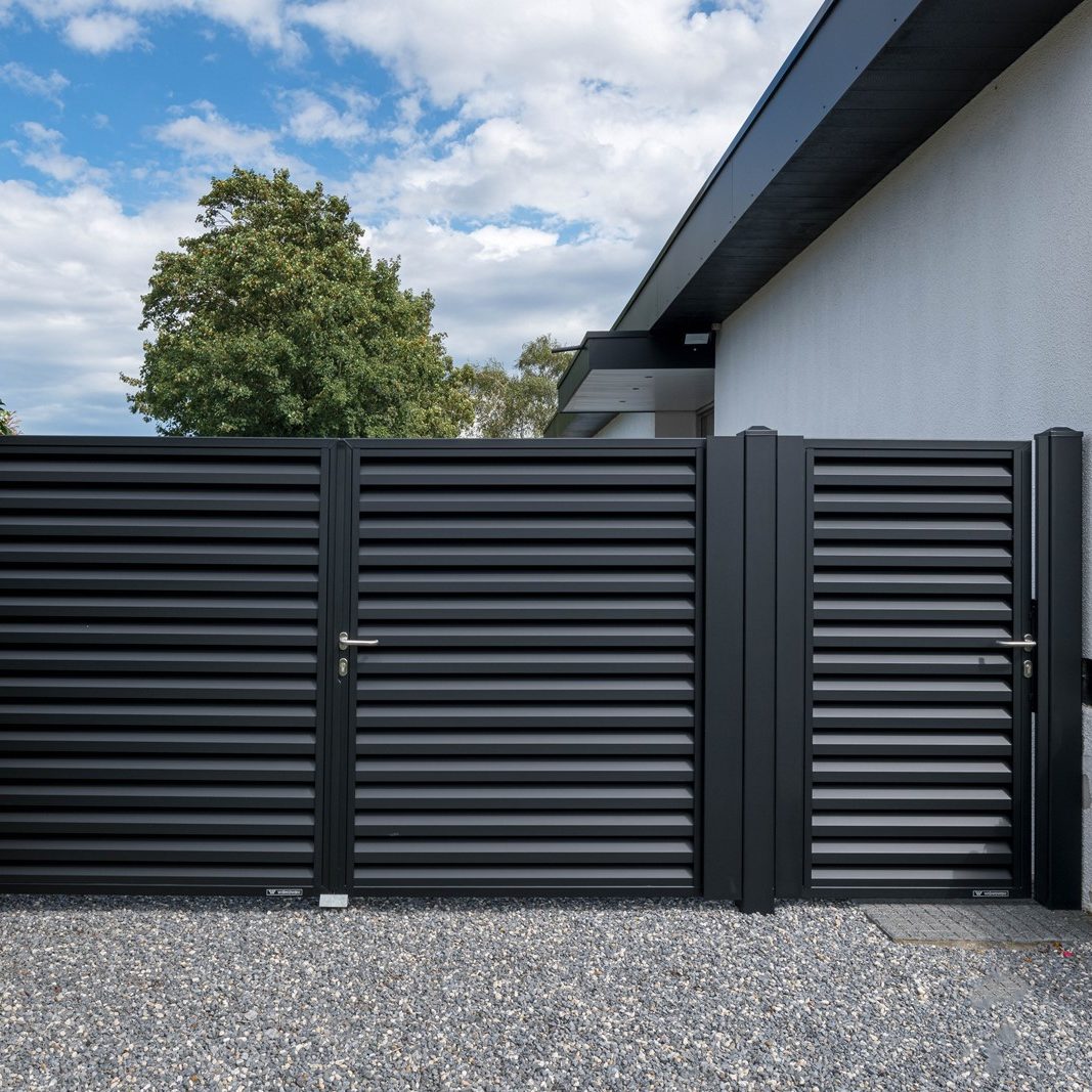Tore, Fenstern, Türen und Zäune im selben Design und vom selben Hersteller.