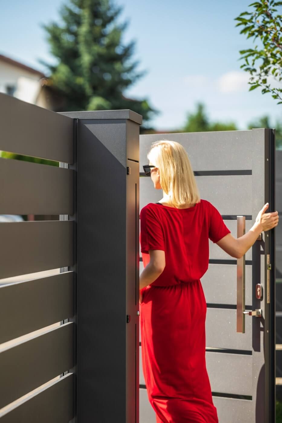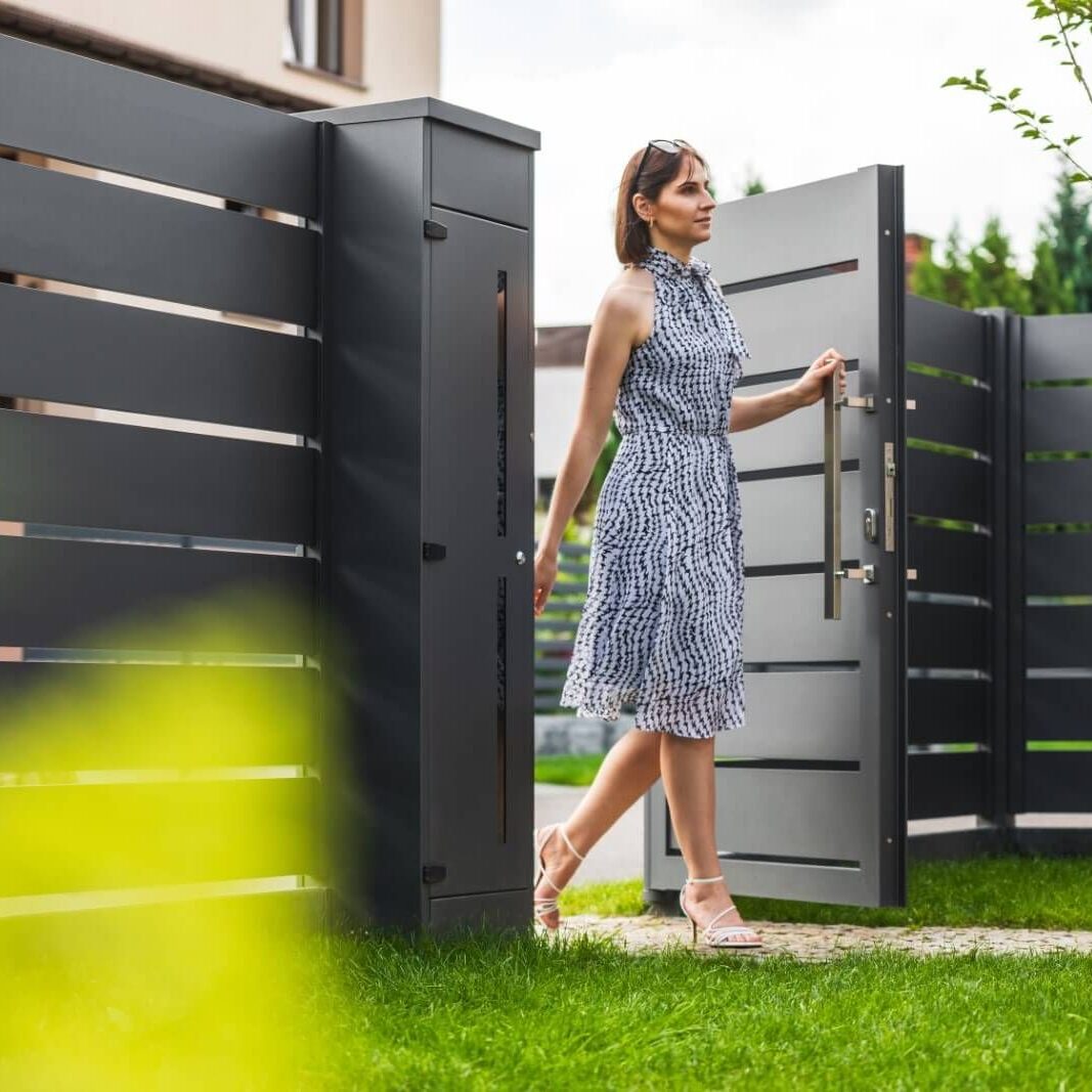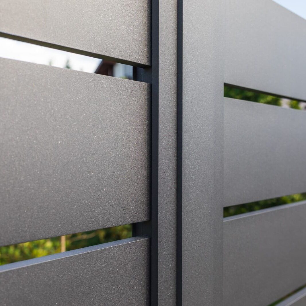 Dank seines raffinierten Designs und seiner minimalistischen Form fügt es sich perfekt in die zeitgenössische Architektur ein und verleiht dem Anwesen Prestige und Eleganz. Aluminium ist ein Material, das für seine Festigkeit und Beständigkeit gegen Witterungseinflüsse geschätzt wird. Zaun AW.AL.100 korrodiert nicht, erfordert keine aufwendige Wartung und behält sein Aussehen über viele Jahre. Darüber hinaus ist es dank seines geringen Gewichts einfach zu installieren.